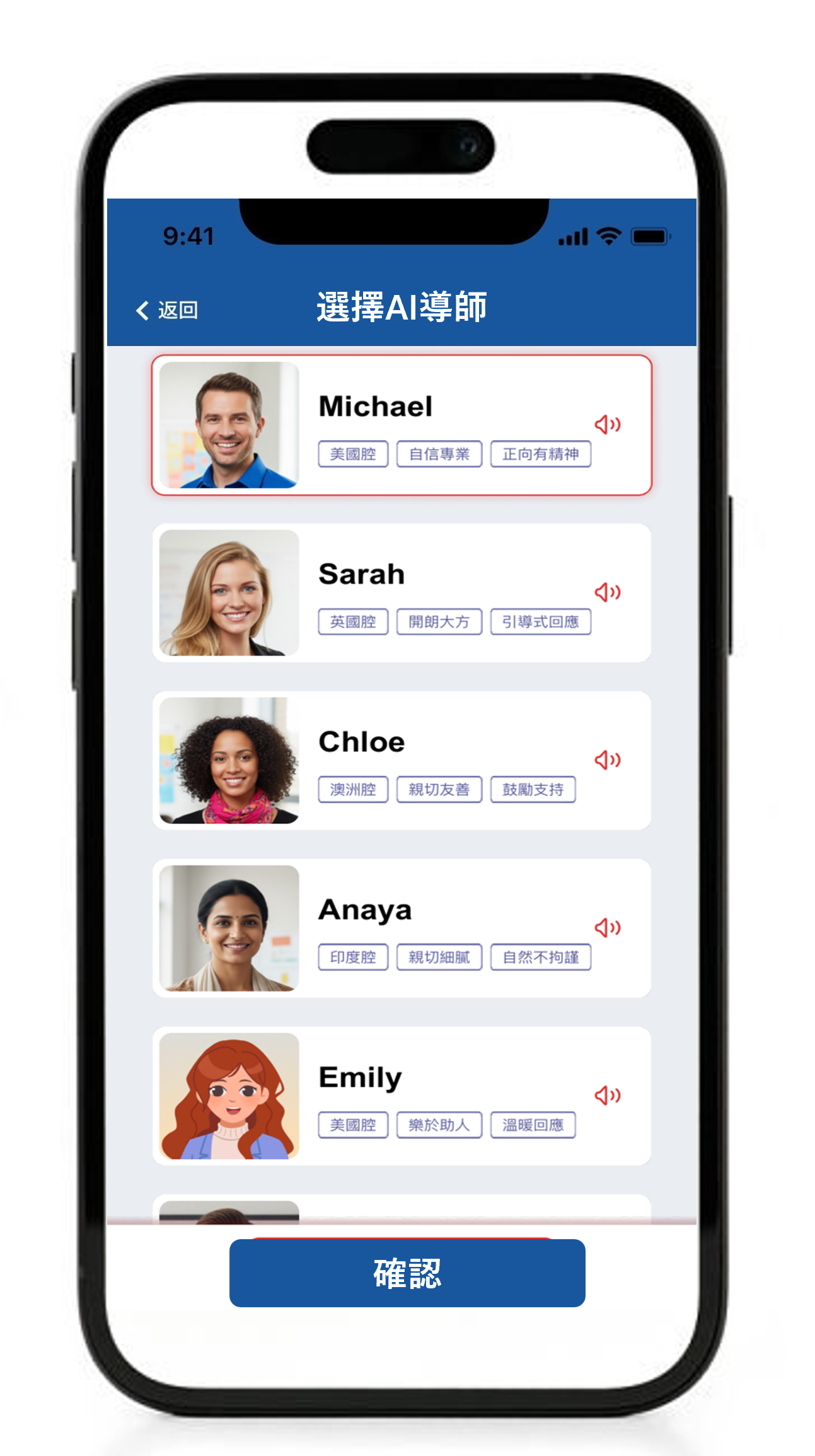 透過靈活的AI學習系統,配合互動英語專業內容,提供7 x 24 口語訓練,隨時隨地彈性學習,更可自選AI導師以不同英語腔調進行口語及聆聽練習,輕鬆提升學員的英語溝通效率。